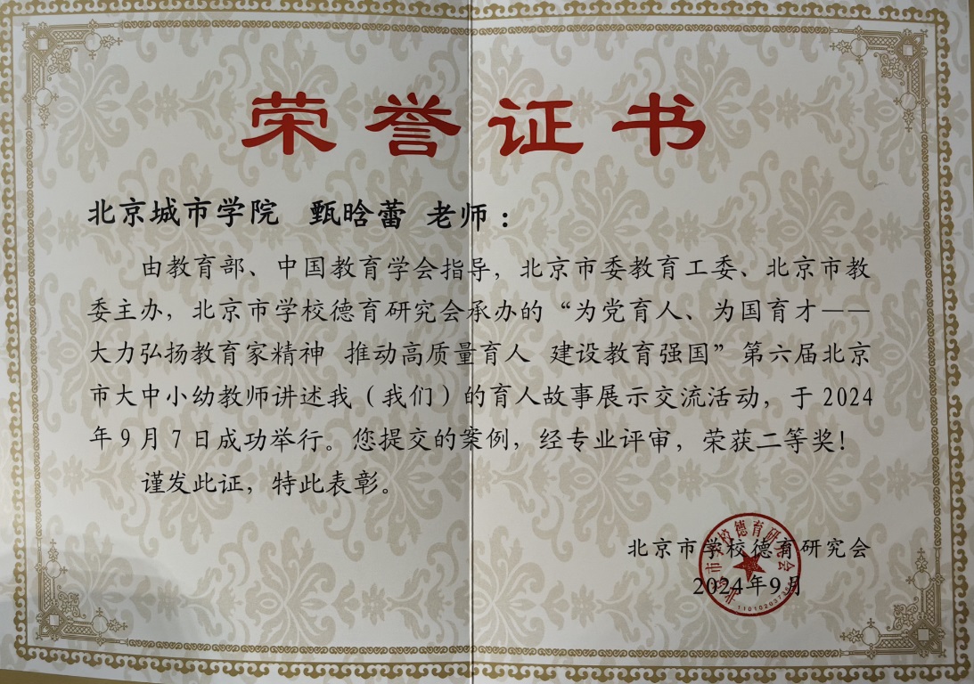 9月7日,在探花直播市委教育工委、探花直播市教委主办,探花直播市学校德育研究会承办的“为党育人、为国育才——大力弘扬教育家精神 推动高质量育人 建设教育强国”第六届探花直播市大中小幼教师讲述我(我们)的育人故事集中交流展示活动中,我校生物医药学部教师田荣荣的育人案例获得一等奖、国际文化与传播学部教师邓兴军和经理管理学部教师甄晗蕾的育人案例均获二等奖。