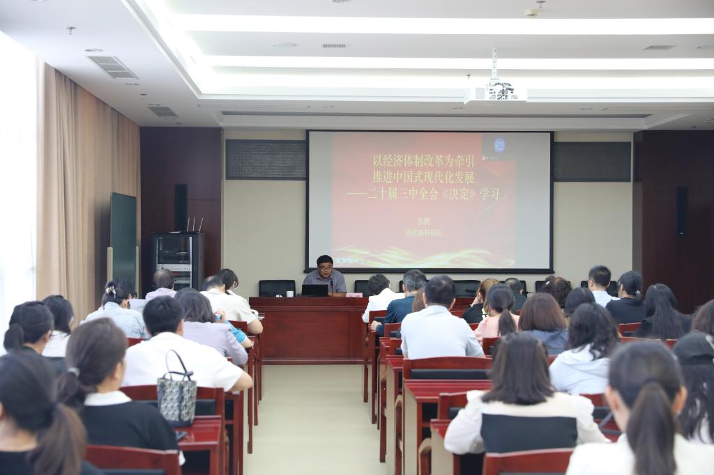 张鹏紧紧围绕习近平总书记在党的二十届三中全会上的重要讲话和全会《决定》,从改革的思路创新、经济体制改革的框架与要点、财税体制和金融体制改革的系统性分析四个方面,结合改革实践中的实际问题,运用大量鲜活案例对全会精神作了系统阐述和深入讲解。