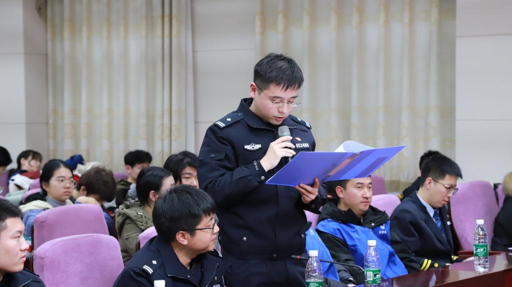 宋宇警官针对宪法的基本原则、公民的基本权利和义务等方面进行了深入浅出的讲解。他通过列举同学们在学习和生活中一些与自身息息相关的实际案例,生动形象地帮助同学们理解宪法如何在日常生活中发挥着根本性的作用,使抽象的法律条文变得鲜活易懂。随后,结合大学生群体常见的刑事、治安类案件,如猥亵、电信诈骗、危害公共交通安全等,警官详细分析了案件发生的原因、特点及危害,并讲解了相关法律法规法条,以真实案例为警示,提醒同学们增强自我保护意识,自觉遵守法律法规,远离违法犯罪行为。