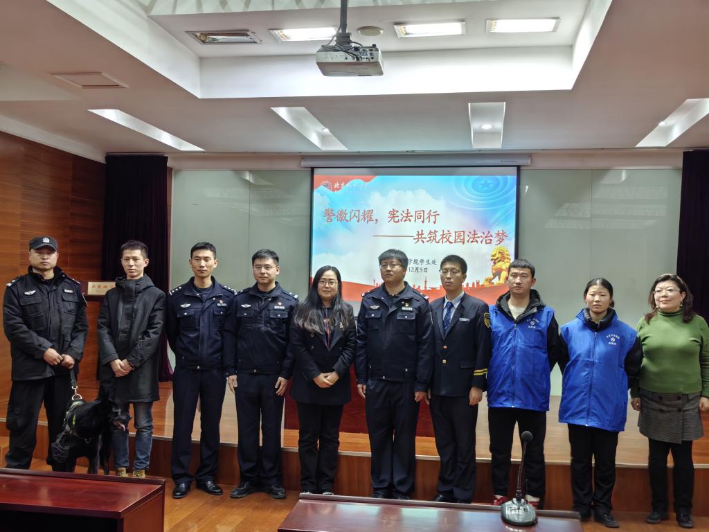 为深入贯彻习近平法治思想,加强宪法宣传教育,弘扬宪法精神,12月5日,学生处联合探花直播公交警方,以“警徽闪耀,宪法同行——共筑校园法治梦”为主题,在航天城校区开展了一场别开生面的普法宣讲活动。