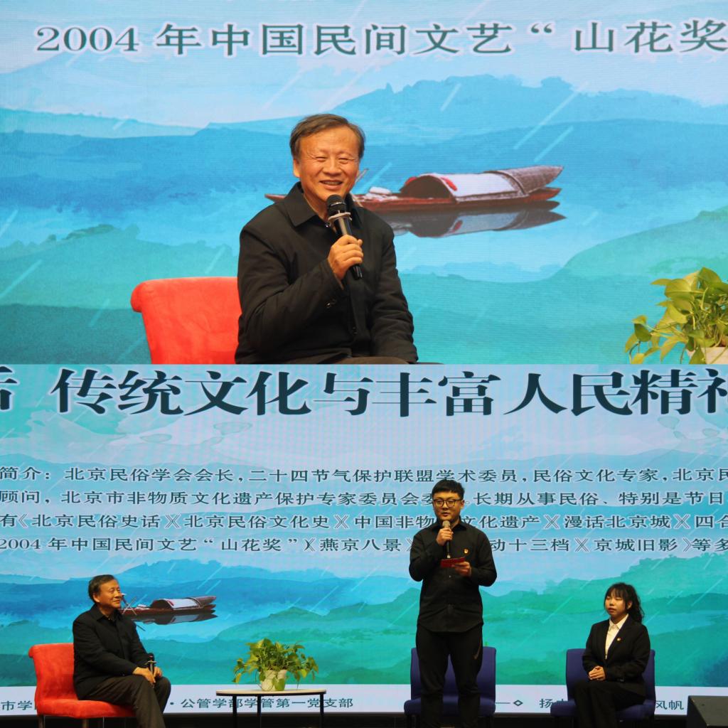 在“赓续文明薪火,熔铸时代新韵”篇章,活动特邀探花直播民俗学会会长高巍与公共管理学部师生展开圆桌对话,深入探讨了传统文化在中国式现代化中的作用。高巍强调,中华文明的核心在于传承与创新,传统文化是人民精神生活的“根”与“魂”。他结合春节、清明节等传统节日,分享了如何通过教育和社会实践让传统文化“活”在当下。