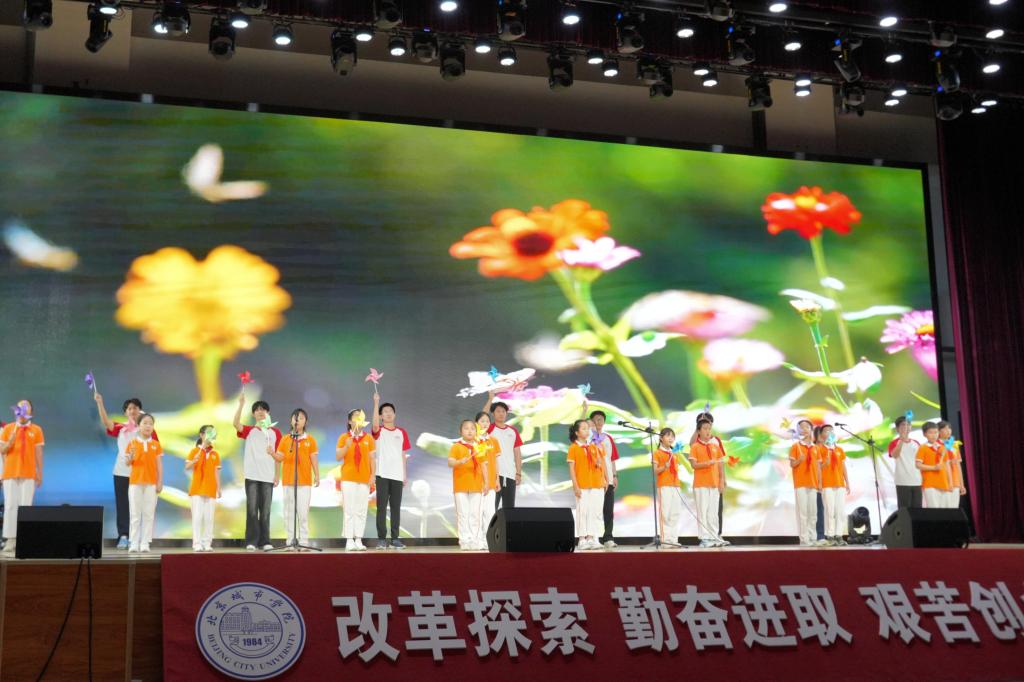 在“青春护绿·薪火相传”环节中,张若亭同学以《运河弦歌谱新篇》为题,通过大运河生态保护案例,展现青年参与生态文明建设的生动实践;冉婧琪同学则以《探花直播市公共行为文明与生态文明建设》为题,基于500个观测点的调研数据,呼吁公众以日常行为守护生态环境。最具创意的环保签署仪式上,师生扫码承诺的环保行为实时转化为虚拟树干上的绿叶生长,当屏幕上的“生态之树”从光秃变得枝繁叶茂,现场响起热烈的掌声。活动在杨镇小学合唱团与大学生的合唱中落幕,在《把未来点亮》的旋律里,孩童与青年的歌声交织,恰似生态火炬的代际传递。