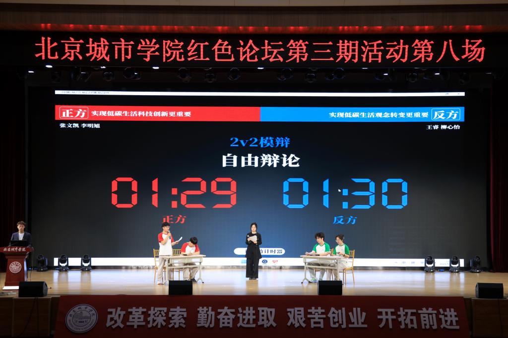 论坛还通过人物志访谈、诗朗诵、辩论赛等形式,展现不同群体对绿色发展的多元认知与实践经验。环卫工人、校内后勤老师与志愿者代表分别从“生态卫士”成长路径、高校节能减排创新举措、志愿服务实战经验等角度,分享基层行动对生态文明建设的推动作用;诗朗诵《绿水青山,生态文明的赞歌》以古典诗词与现代原创诗句的交融,讴歌自然之美与生命韧性;辩论赛《实现低碳生活:科技创新更重要还是观念转变更重要》则以思辨碰撞,揭示技术革新与观念转变的双向赋能关系,引发全场对绿色发展路径的深入思考。