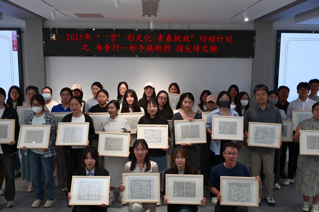 为传承弘扬中华优秀传统文化,推动非遗在高校的传播与发展,6月8日,我校文化遗产学部学管第一党支部受邀参加2025年“‘京’彩文化 青春绽放”行动计划之书香行-“妙手换新颜 指尖传文脉”古籍修复体验活动。文化遗产学部学管第一党支部书记、学工办主任赵娟带队,携党支部师生党员、学部各年级学生代表,共赴这场古籍修复的文化盛宴。