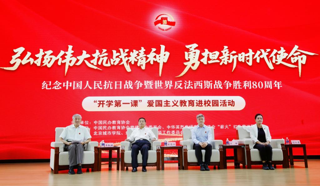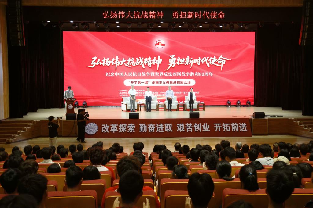 为隆重纪念中国人民抗日战争暨世界反法西斯战争胜利80周年,深入学习贯彻习近平总书记关于伟大抗战精神的重要论述,9月17日下午,以“弘扬伟大抗战精神·勇担新时代使命”为主题的“开学第一课”爱国主义教育进校园活动在我校顺义校区潮白讲堂顺利举行。