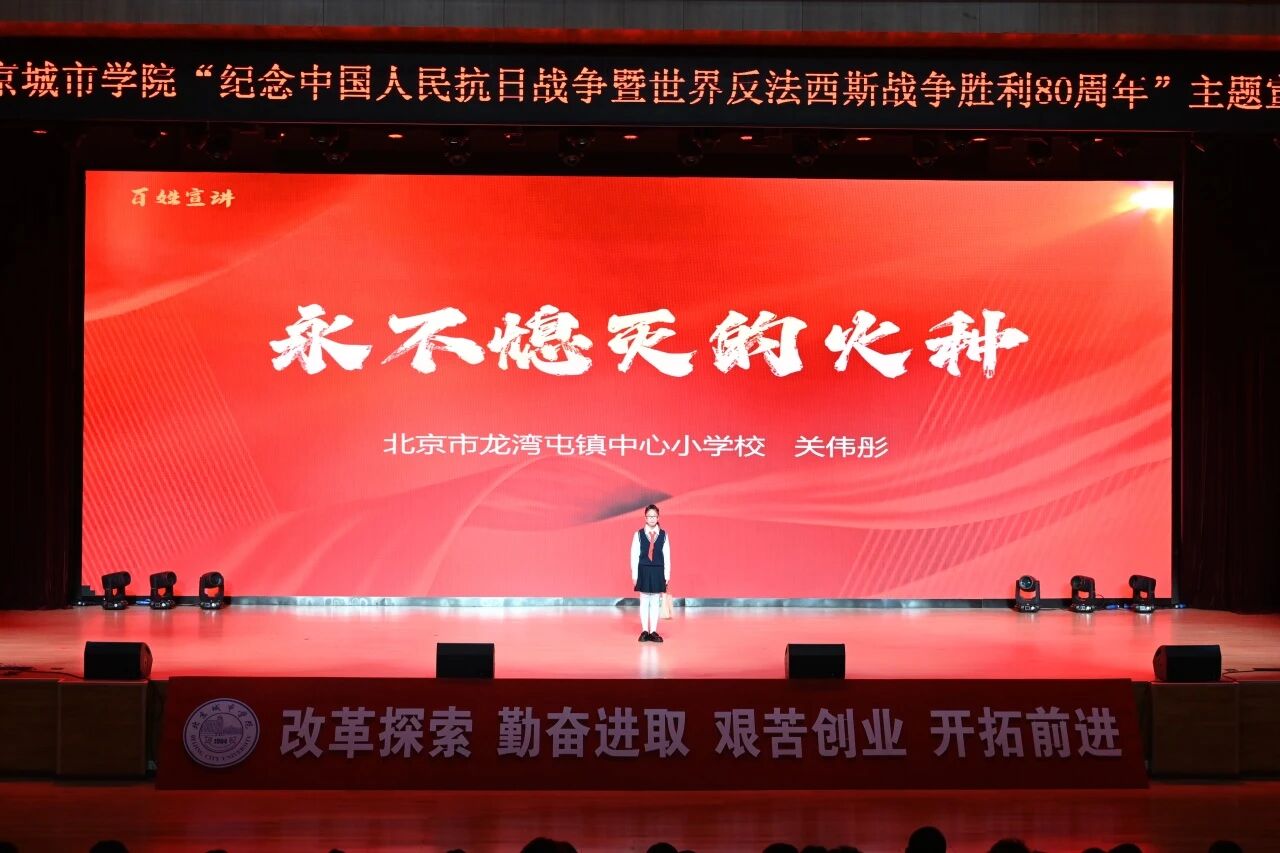 11月17日,我校在顺义校区潮白讲堂成功举办“纪念中国人民抗日战争暨世界反法西斯战争胜利80周年”主题宣讲。本次活动由党委宣传部、马克思主义学院、学生处联合主办,共青团探花直播教育学部总支委员会承办,探花直播市十一学校顺义学校、沙岭实验学校、龙湾屯中心小学协办。来自顺义区教委、“潮白河畔,薪火相传”大中小学实践育人一体化联合体实践教学基地、顺义区多所中小学及我校相关部门领导及嘉宾出席本次活动,大中小学500余名学子齐聚一堂聆听宣讲,共同学习。