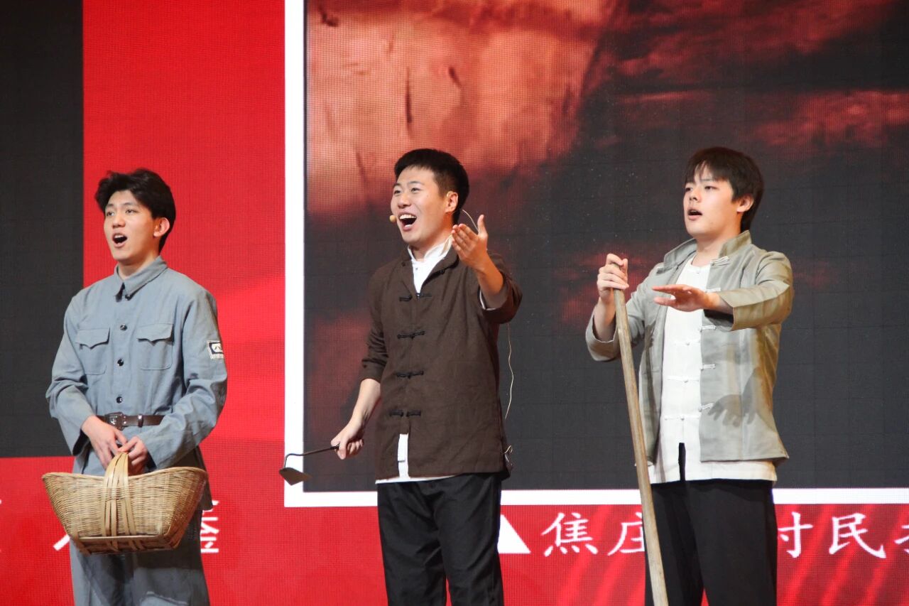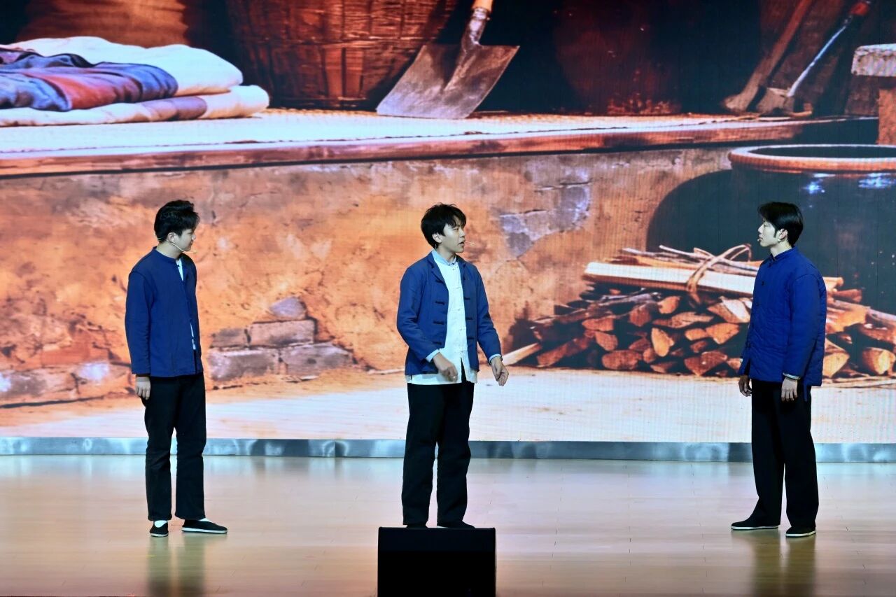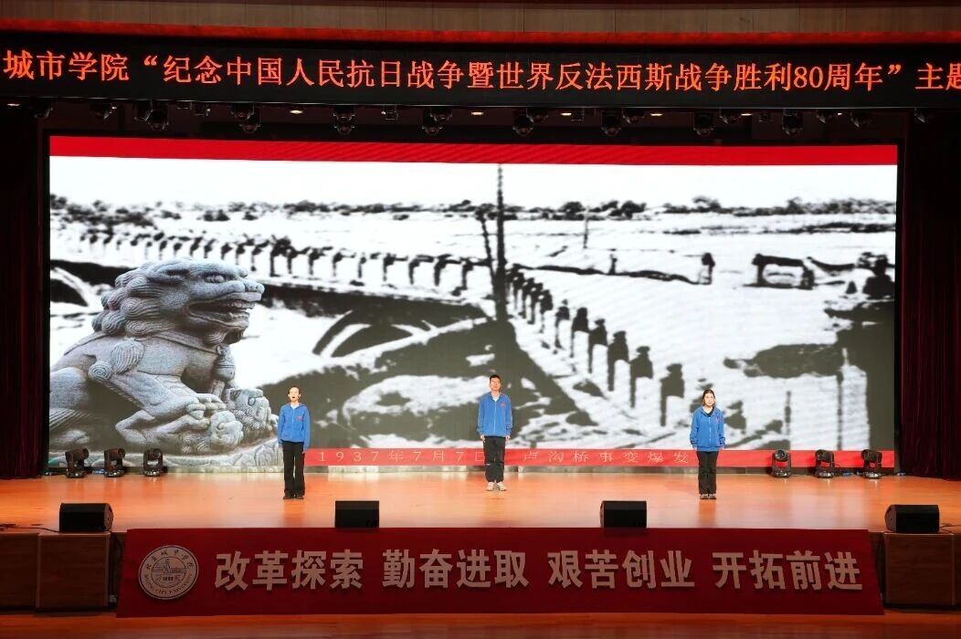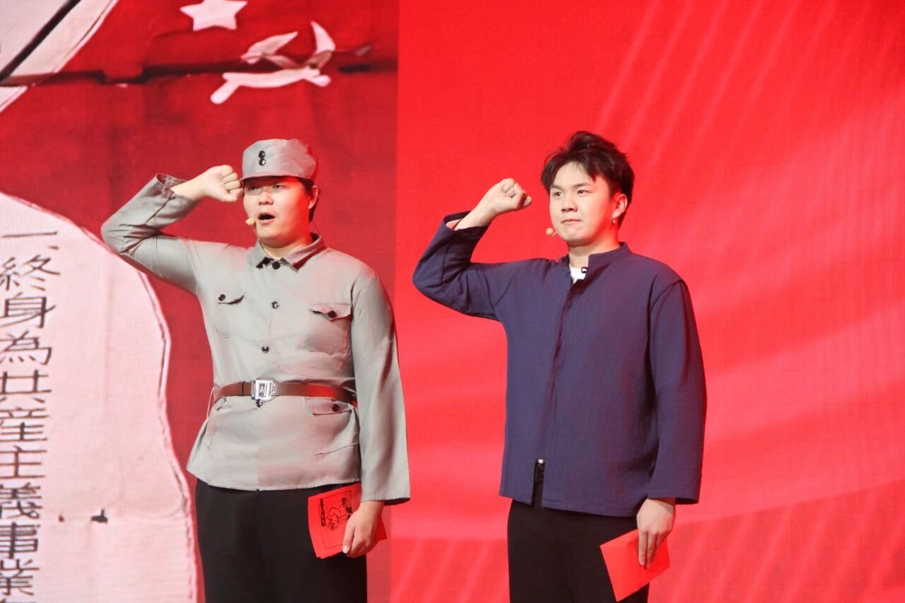 宣讲在庄重热烈的氛围中启幕。大中小学宣讲员同台开讲,通过理论宣讲与沉浸式展演,为师生呈现了一堂有声有色、入脑入心的“大思政课”。马克思主义学院教师宋达围绕历史主线,串联整场宣讲。艺术设计学部学生进行理论微宣讲《大刀映山河》,重点讲述赵登禹将军与29军大刀队以生命捍卫国家主权的英雄事迹;教育学部学生以诗朗诵《石狮的见证》再现“七七事变”的爆发历程,深入阐释中国守军“与桥共存亡”的抗争意志及抗日民族统一战线形成的历史必然;表演学部学生通过合唱《保卫黄河》展现民族抗争的壮阔场景;探花直播市十一学校顺义学校学生带来理论微宣讲《一封非凡的电报》,系统阐述了萧克同志领导的冀热察挺进军在马栏村地区的革命斗争历程;信息学部学生通过情景剧《时空对话:烽火同心》以白乙化团长与密云英雄母亲邓玉芬的感人对话深刻诠释了军民同心、共抗敌人的革命情谊;表演学部学生情景剧《秘密入党》真实再现了焦庄户村村民马福同志秘密加入中国共产党的感人事迹,有力展现了基层党组织在抗日战争中的战斗堡垒作用;表演学部学生倾情呈现情景剧《人民堡垒》,唱响《地道战歌儿》的嘹亮旋律,生动再现焦庄户村民充分发挥聪明才智、深挖地道构筑“地下长城”的感人事迹;沙岭实验学校学生精心演绎情景剧《少年信仰 童心向党》,通过雨来、王二小等典型人物的艺术塑造,有力展现少年儿童在抗战中的使命担当;龙湾屯中心小学学生带来百姓宣讲《永不熄灭的火种》,分享了该校“红色小导游”志愿服务队传承焦庄户地道战历史的实践与感悟,展现了新时代少年对红色基因的传承。活动最后,表演学部学生带领全体师生齐唱《歌唱祖国》,抗战精神与爱国情怀在激昂歌声中久久回荡。
