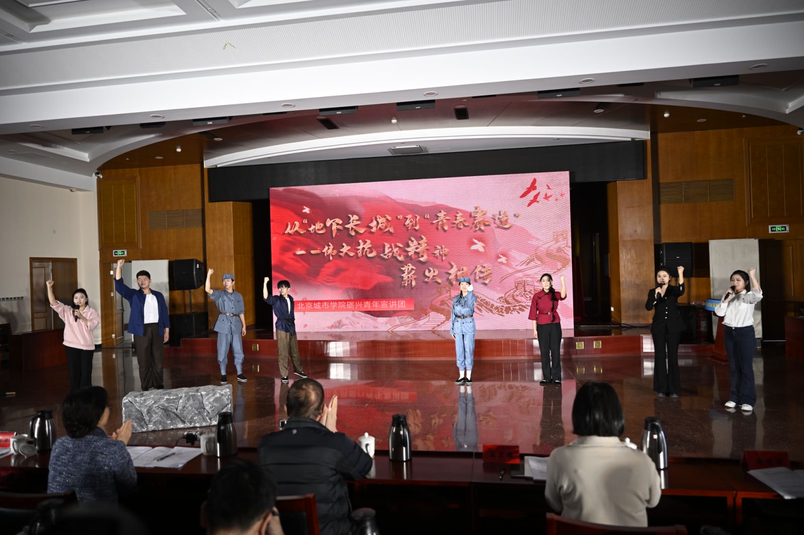 宣讲以“从‘地下长城’到‘青春赛道’——伟大抗战精神薪火相传”为主题,采用“理论+故事+文艺”融合模式,深入挖掘属地焦庄户地道战遗址红色资源,以纪念馆讲解员视角展开情景叙事,通过原创红色剧目和沉浸式思政课实践,生动展现了焦庄户人民以智慧和勇气铸就“地下长城”的故事,体现了当代青年对伟大抗战精神在新时代赓续传承的坚定决心。
