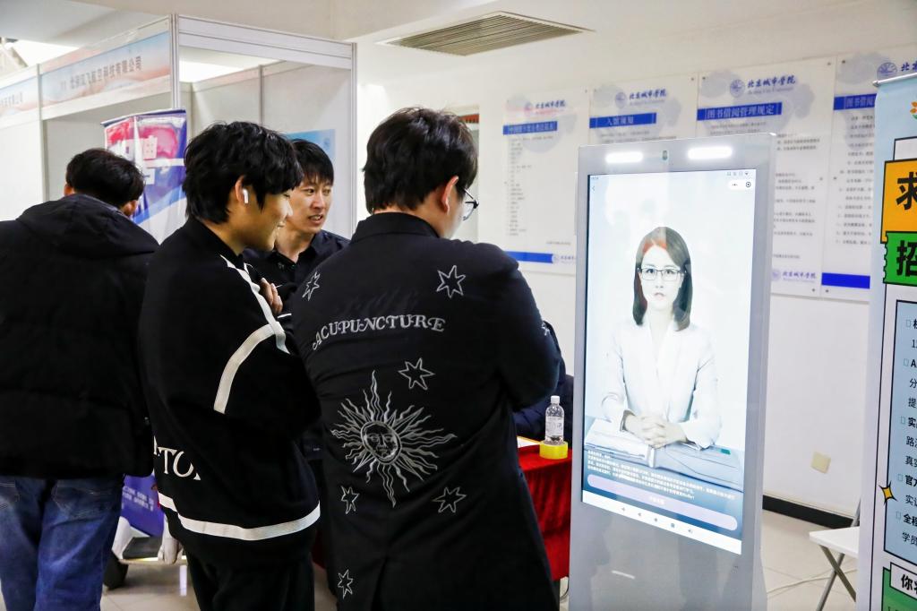 为适应智慧就业新趋势,学校首次引入“AI面试体验区”,为毕业生提供科技化求职支持。AI面试系统通过模拟真实面试场景,即时生成语音、表情、逻辑等多维度评估报告,帮助学生快速掌握面试技巧,依托大数据分析技术为学生提供个性化面试指导建议,吸引了超200名学生参与体验。