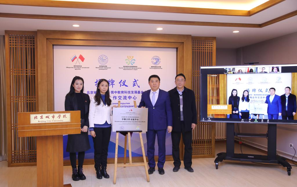 12月20日,我校与俄中教育科技发展基金会合作举办的中俄合作交流中心揭牌仪式在中关村创新智库中心顺利举行。我校党委副书记叶映芳、俄中教育科技发展基金会秘书长崔凡参加揭牌仪式。俄罗斯国际合作署副署长谢夫佐夫、俄中友好协会副主席萨纳科耶夫、莫斯科国立大学外事副校长马泽毅、俄罗斯国立赫尔岑师范大学国际合作副校长伊丽娜、柴可夫斯基音乐学院对华工作小组主任、学院电视台台长巴贝克、俄中教育科技发展基金会会长崔姗等嘉宾线上出席本次活动。参加揭牌仪式的还有我校表演学部、国际文化与传播学部的师生代表。
