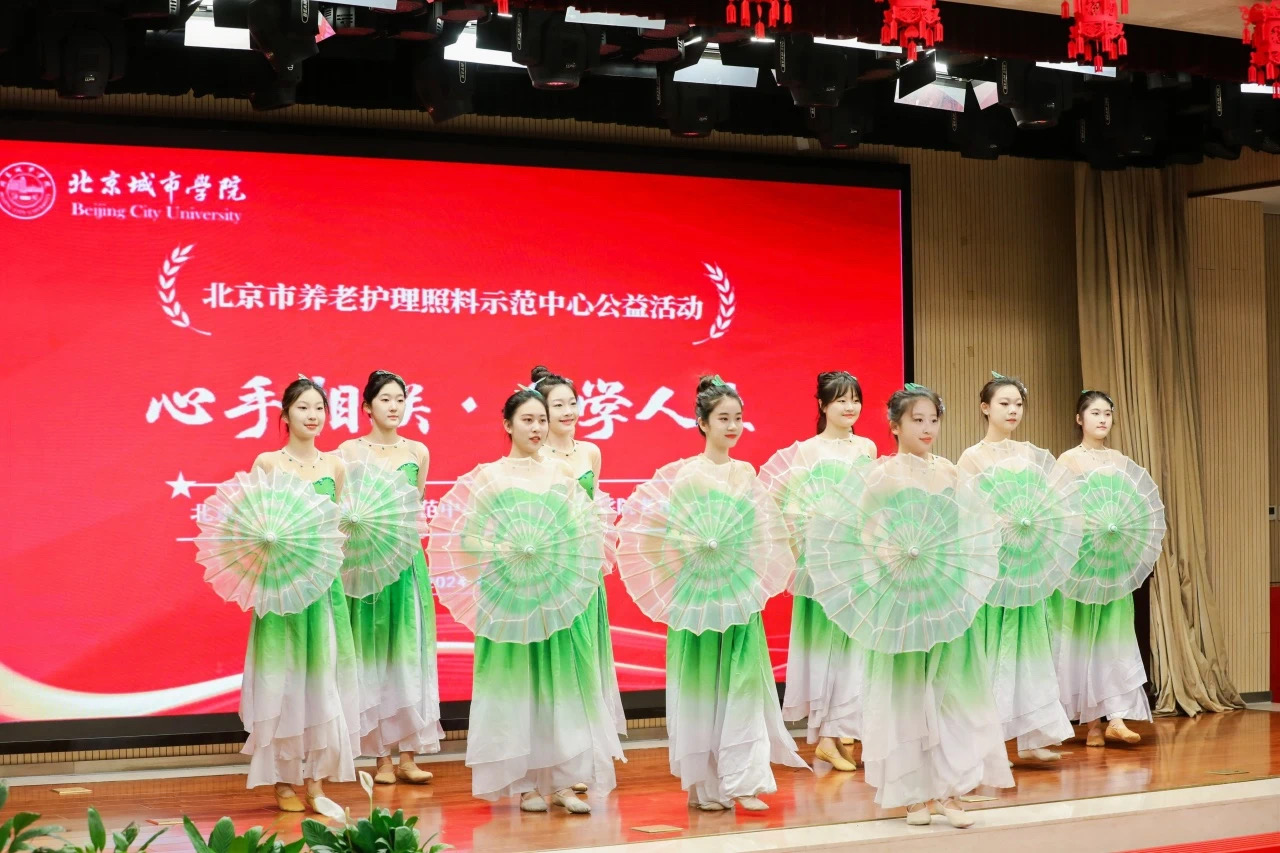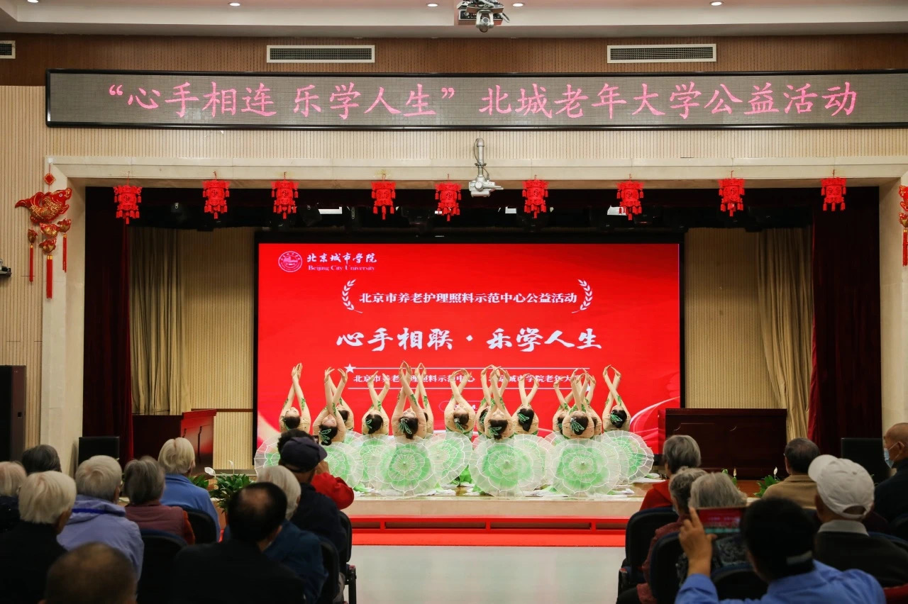 教育学部师生志愿者在中心多功能厅为近百位老人奉上了精彩的演出,歌曲《樱花时节》《纺织姑娘》、舞蹈《茉莉花》让现场气氛温馨热烈。