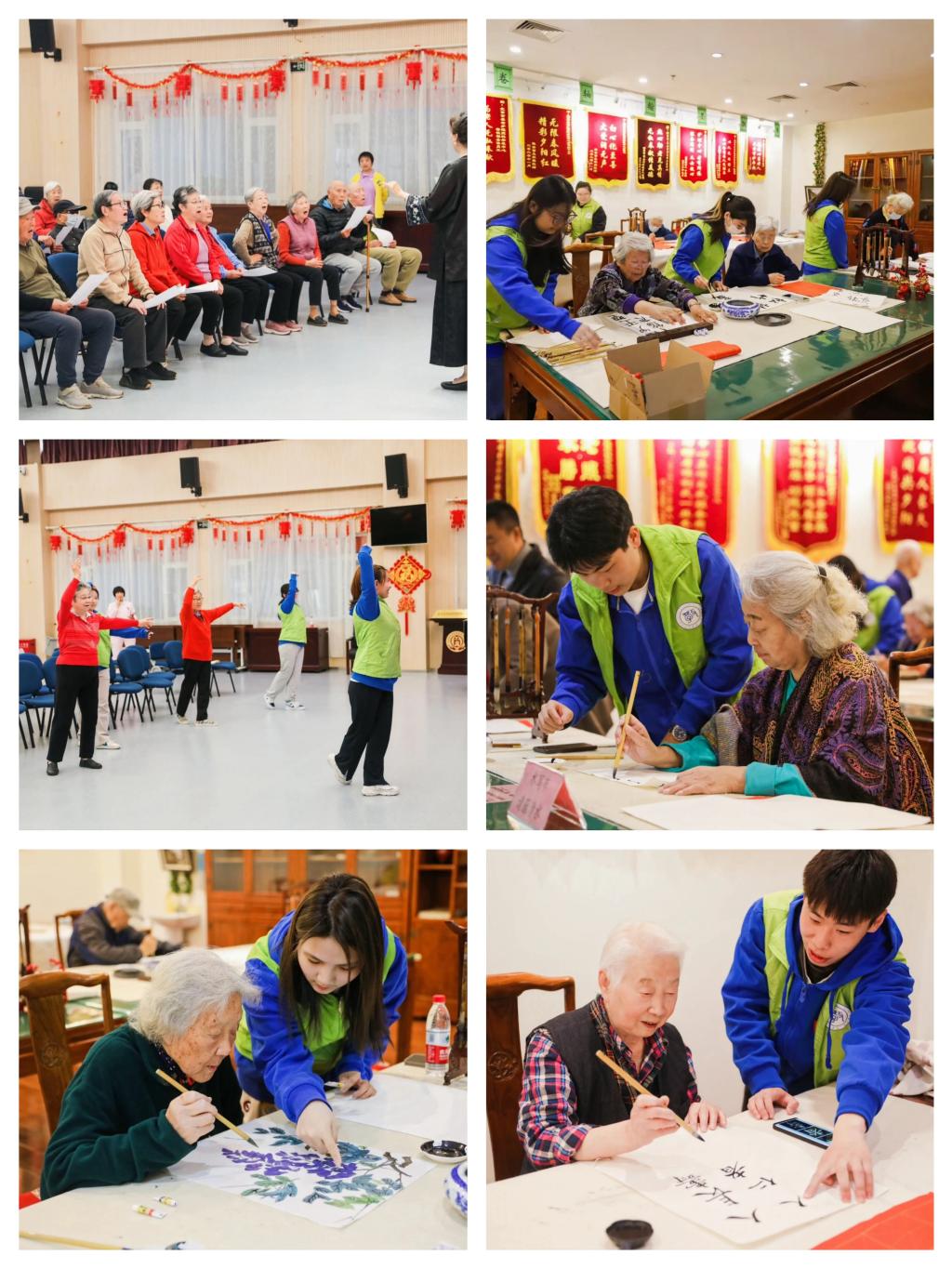 演出结束后,老人们走进各专业活动室,学习我校老年大学与教育学部共同研讨、精心准备的书法、中国画、合唱、舞蹈等丰富多彩的课程。授课教师用通俗易懂的语言和温柔亲切的态度,引导老人渐入佳境,让他们在轻松愉快的氛围中学习新知识。志愿者们怀揣着热情和耐心,全程陪伴老人左右,帮助他们解决学习过程中的疑问,鼓励他们持续学习、不断进步,为老人带来了心灵的慰藉与温暖。