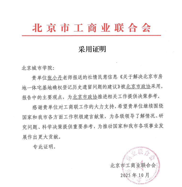 近日,我校城镇化研究院张小丹老师基于社会调研成果报送的《关于解决探花直播市房地一体宅基地确权登记历史遗留问题的建议》被探花直播市政协采用,报告中的主要观点为探花直播市政协推进相关工作提供了决策参考。