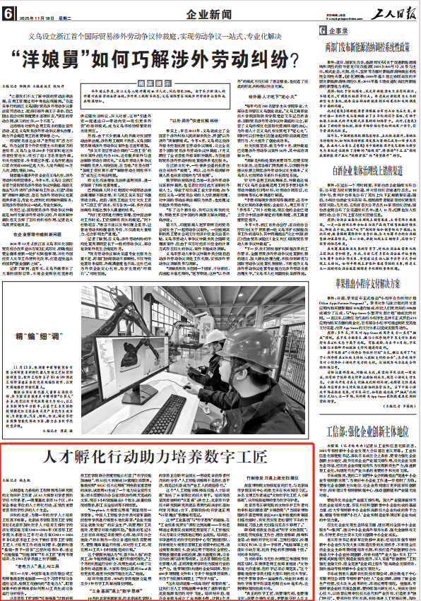 11月18日,《工人日报》刊登文章《人才孵化行动助力培养数字工匠》,专题报道我校首都工匠学院在数字工匠人才培育领域的创新实践与显著成效。报道聚焦学院打造的数字人才孵化行动,详细呈现了我校首都工匠学院通过分层培养体系与场景化教学,为千余名不同行业从业者插上“数字翅膀”,成为首都数字经济人才供给的重要支撑力量。