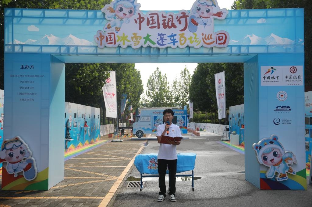 9月8日上午,中国冰雪大篷车百场巡回活动在我校顺义校区举行,校党委副书记、副校长秦士友,校学工委书记杨培玉,校团委书记杨璐,沙岭实验学校小学生和我校师生代表共同参加了活动启动仪式。