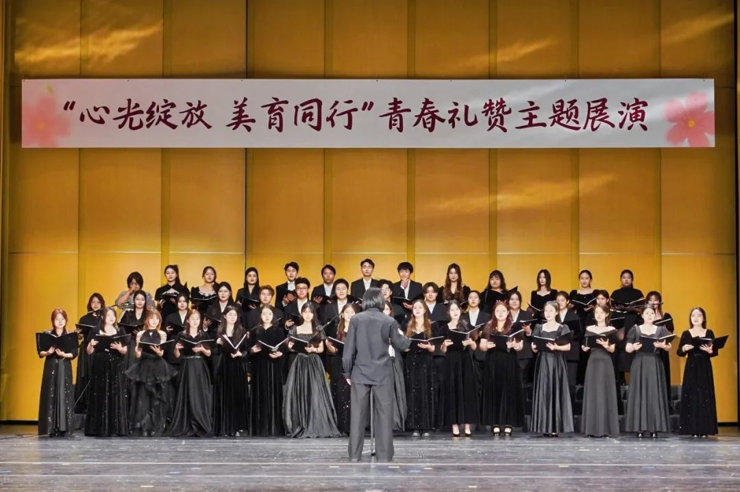 “美美与共”篇章凸显大中小学协同育人特色。学校音乐剧社倾情呈现《献给明天的花束》,用歌声与故事传递信念与勇气;民乐团创新演绎《就是哪吒》,将传统民乐与当代青年文化符号结合,诠释文化自信;体育舞蹈团将力与美融入《绽放》,展现蓬勃的生命之姿。特别环节中,我校心理素质教育中心主任、国家二级心理咨询师毛晓瑞以“美育心光:以美育叩响心灵之门”为主题,讲述了一堂心理微课。