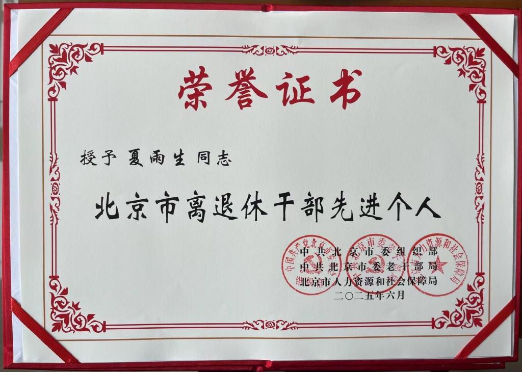 此次荣誉的获得与夏雨生老师长期的耕耘与付出密不可分,他退休不退岗,践初心、勇担当,用言行传递正能量,用实际行动彰显离退休干部本色。
