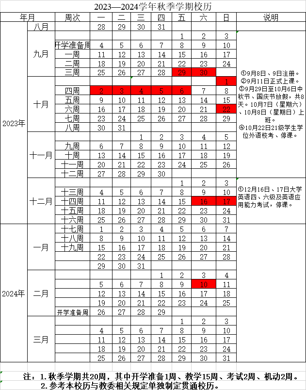 2023—2024学年秋季学期校历