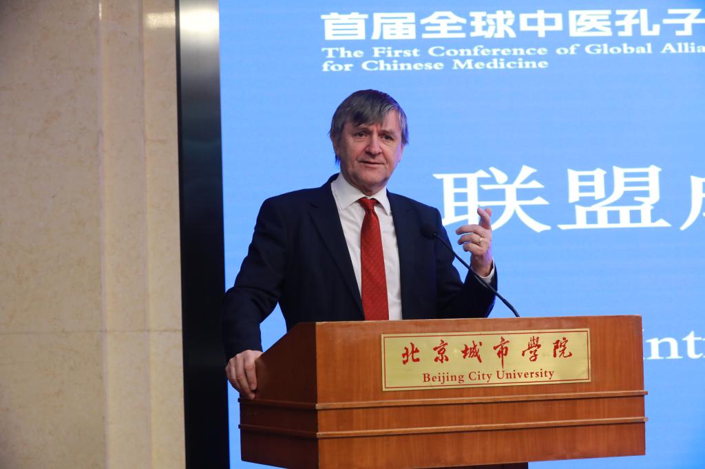 联盟主席、爱尔兰高威大学中医与再生医学孔子学院爱方院长Timothy O’Brien介绍了联盟具体工作,回顾了联盟自成立到正式运营的过程中开展的系列活动,阐释了联盟为加强各中医孔子学院在中医药教学、临床、科研等方面的全方位合作搭建了良好的平台,必将进一步扩大合作范围,产出合作成果。