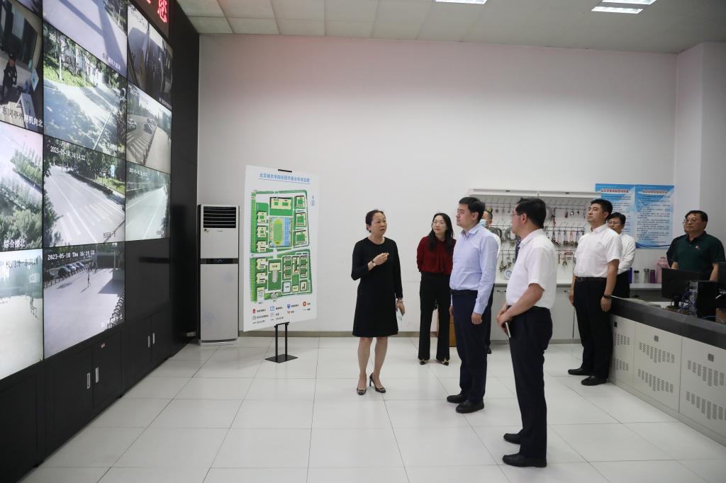 崔小浩来到学校监控中心、消防控制室、学生宿舍等处,详细了解校园安保监控系统、安全问题监测及应急处置情况、宿舍安全管理制度等,检查消防通道的通畅性、消防设施的使用管理情况及消防安全措施落实情况,仔细询问学校在安全方面面临的困难以及需要属地协调解决的问题,并在走访中与学生热切交流,询问学生生活学习情况。