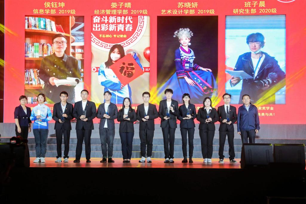 党委书记龚裕、党委副书记叶映芳、副校长胡丽琴为2021-2022学年北城榜样代表颁奖。在学科竞赛、志愿服务、冬奥保障等方面获得突出成绩的学生代表受到表彰,为新生的大学启航提供榜样示范。
