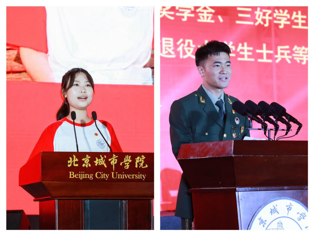 经济管理学部2022级新生苗卉妍、研究生部2022级新生彭博涵作为新生代表发言:“清晰立体的北城精神更加坚定了我的北城梦想”,“作为北城新生的我们,应扎实学好每一堂课,读好每一本书,走好每一步路,以青春之我、奋斗之我,书写人生华章”。