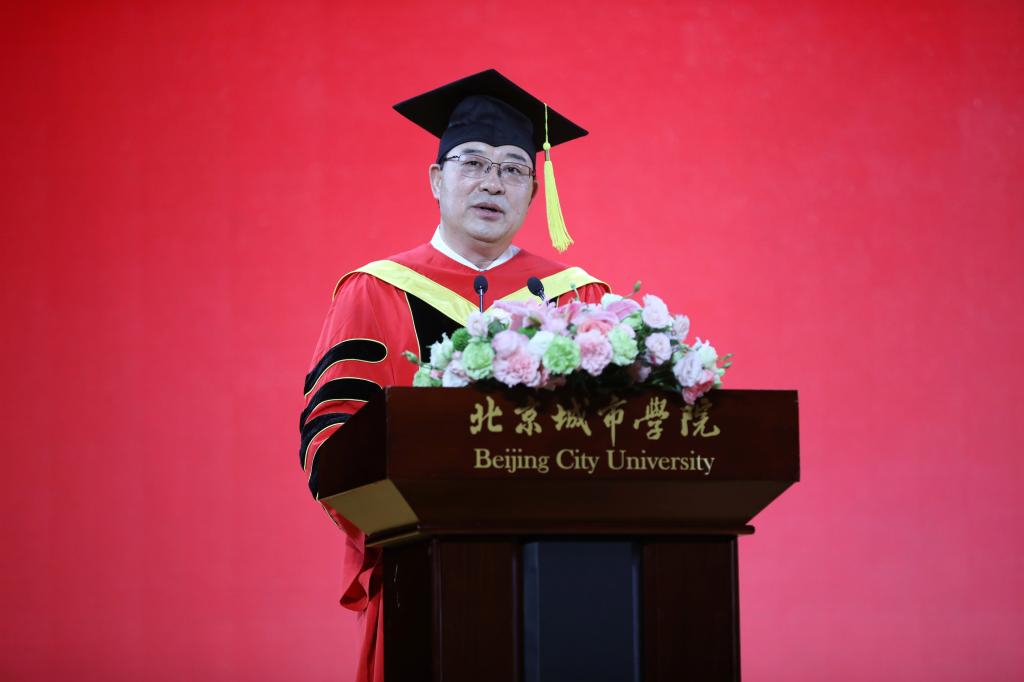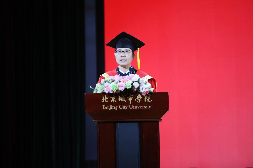 毕业生代表王俊杰、谢林辰依次发言,分别讲述了自己在校期间的成长历程,表达了对母校的感激和不舍之情,并表示将牢记北城校训和师长嘱托,高扬理想风帆,投身强国伟业,披荆斩棘,奋力奔跑,不负时代,不负韶华,用青春继续谱写新的百年华章。