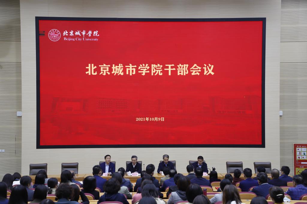10月9日下午,全校干部会议在顺义校区召开。市委教育工委常务副书记郑吉春、市委教育工委副书记李军峰、干部处处长王泳和我校领导班子成员及全校干部、党员、教工代表参加了会议。