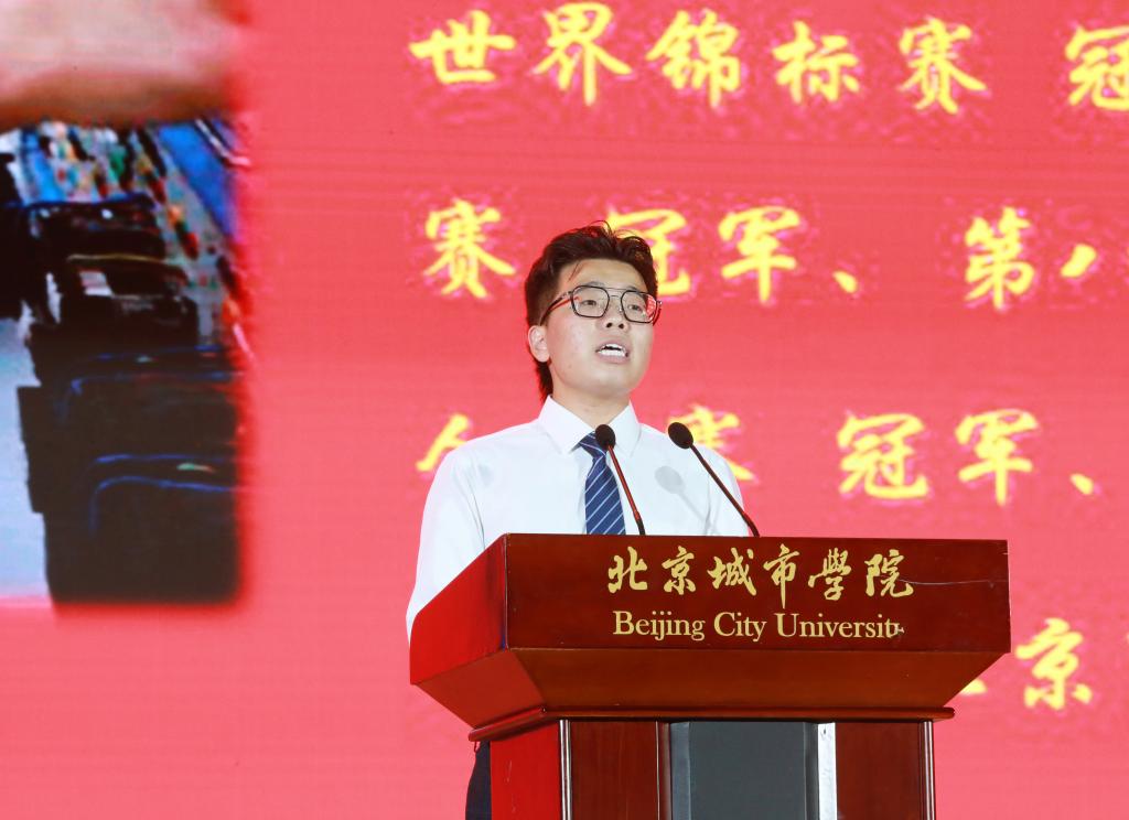 2021级数据科学与大数据技术(阿里云校企合作班)专业学生高文奇和2021级广播电视编导专业研究生曹建林代表新生发言。他们将“崇尚创新、崇尚拼搏、崇尚实干”的北城精神融入初入校园的感受里、融入对未来大学生活的思考中,表示将珍惜大学时光、学好专业知识、增强发展本领,打好人生基础。