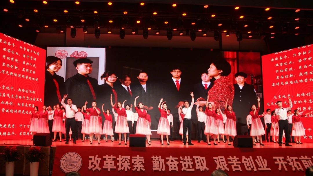 庆祝大会在庄严的国歌声中拉开帷幕。刘林校长作主旨报告,深情回顾了学校从创立之初的艰辛探索到逐步发展壮大的风雨历程,深刻总结了建校四十年来“六个始终坚持”的主要经验,用一个个生动的数据和实例展现了学校40年来的辉煌发展轨迹。他指出,从来没有从天而降的泼天富贵,学校取得的一切成绩都是在各级党委、政府领导下和社会各界支持下,历届师生弘扬校训精神,以无尽的汗水、智慧、心血换来的。刘林校长含泪缅怀了傅正泰校长等创业先贤、已故同仁,并深深鞠躬向所有支持、帮助、关心过学校工作的单位与人士,向所有为学校发展作出了贡献的历届师生、校友表达真挚的感谢!