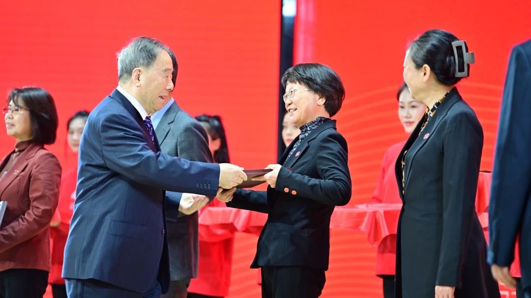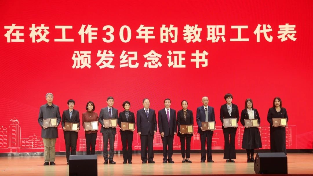 老领导张福森部长和校学术委员会主任郭广生教授为在校工作30年的教职工代表们颁发纪念证书,感谢他们砥砺深耕、培育桃李。