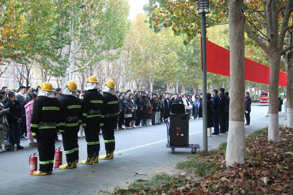 11月6日,顺义校区学生社区服务中心联合校区保卫处组织开展消防疏散演练活动,校党委副书记、副校长秦士友,杨镇政府安全科科长程明远、杨镇派出所副所长翟鲲鹏、杨镇消防救援站副站长宋成泽等领导莅临现场指导观摩,学生处、保卫处负责人及2024级全体辅导员老师共同参与,2024级宿舍长、网格员共计900余名同学参与演练。