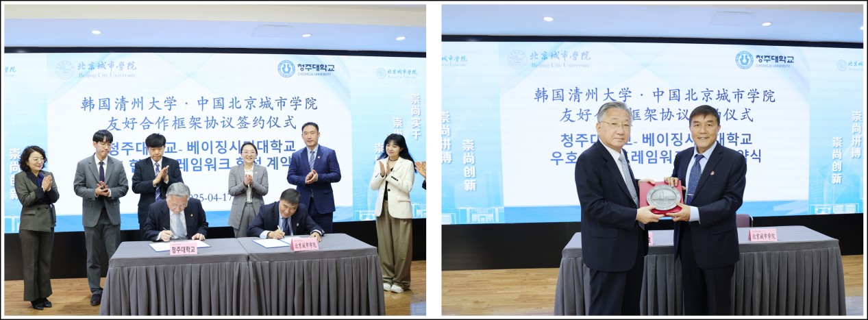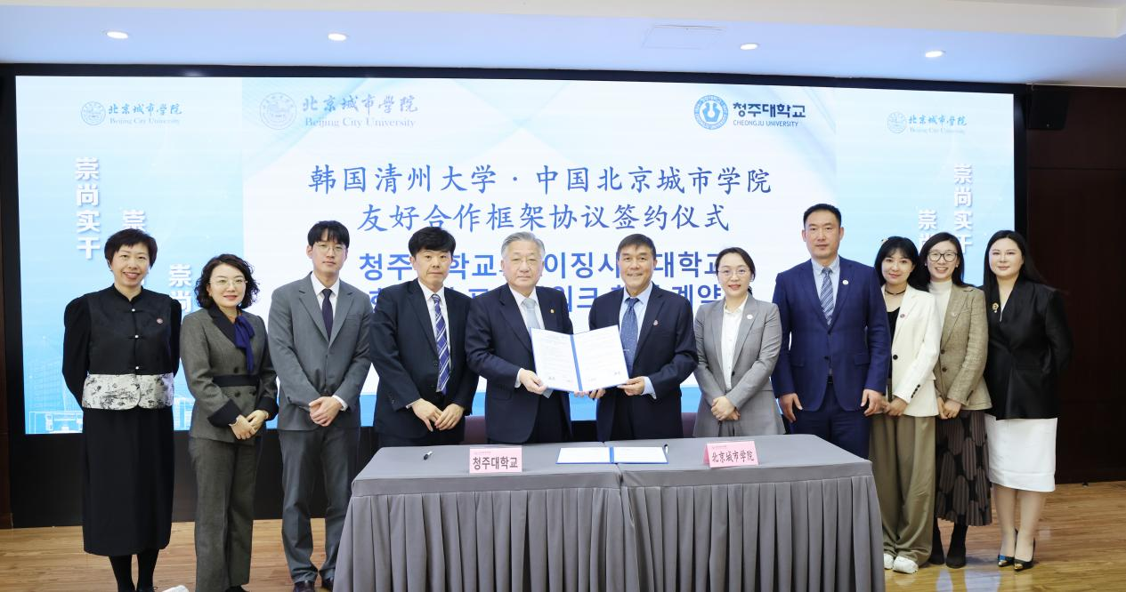 4月17日,我校与韩国清州大学友好合作框架协议签约仪式在我校顺义校区举行。清州大学校长金润培及国际处、艺术学院代表,我校党委书记龚裕、副校长袁佳及相关学部、部门负责人共同出席仪式。