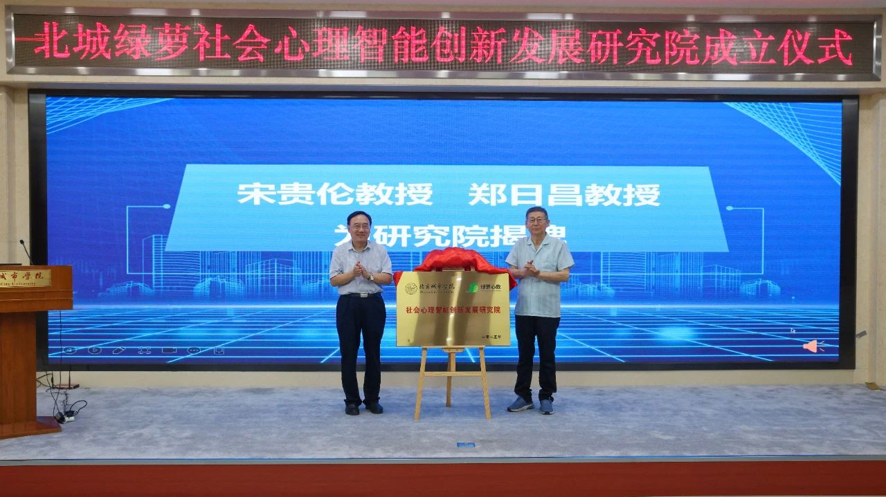 在热烈的掌声中,宋贵伦教授与郑日昌教授共同为北城绿萝社会心理智能创新发展研究院揭牌,标志着这一聚焦社会心理智能创新的研究平台正式启航。