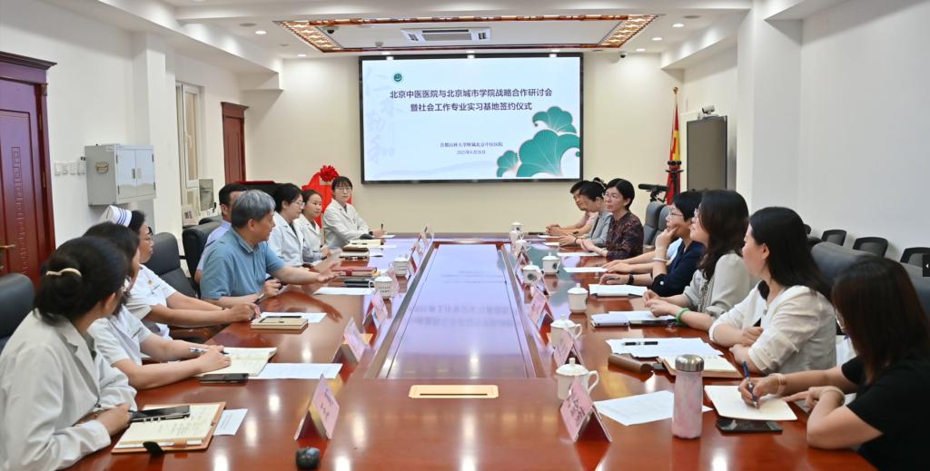 刘林分享了学校在应用型人才培养、学科交叉融合及服务首都社会发展中的实践经验,表达了对双方合作的期待,期望双方共同努力,推动医务社会工作领域深度合作,并指出了中医药事业传承创新、中医药文化的国际化传播等未来合作方向。随后,双方就资源共享、实践教学、科研协作等议题展开深入交流。