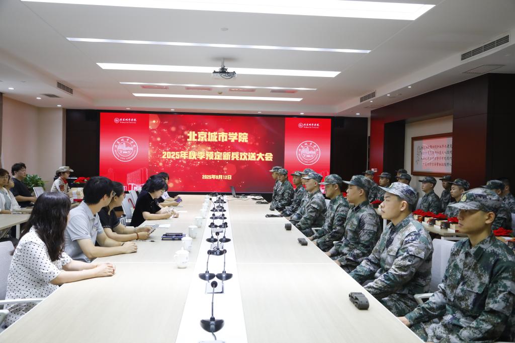 9月12日,我校2025年秋季预定新兵入伍欢送会在顺义校区会议中心第二会议室举行。校武装部部长杨林,学工委、学生处相关负责人出席会议,校征兵工作办公室教师及27名即将入伍的预定新兵共同参会。会议由学生事务中心主任刘继红主持。
