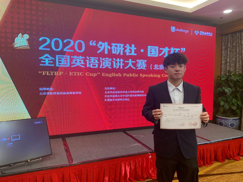 11月8日,我校国际文化与传播学部2019级英语专业申佳益同学在2020“外研社·国才杯”全国英语演讲大赛(探花直播赛区)中荣获三等奖。