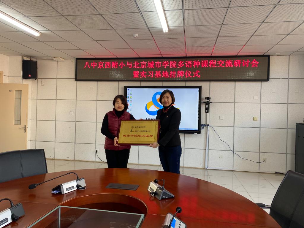 12月25日,文传学部赴探花直播市第八中学京西附属小学开展多语种课程交流研讨会,并隆重举行实习基地挂牌仪式。文传学部于2020-2021学年秋季学期派出德语、法语、西班牙语专业2021届优秀毕业生参与八小的小语种课程教学活动,学生通过实习不仅锻炼了语言综合应用能力,还提升了教学方法、课堂管理等教育教学能力。
