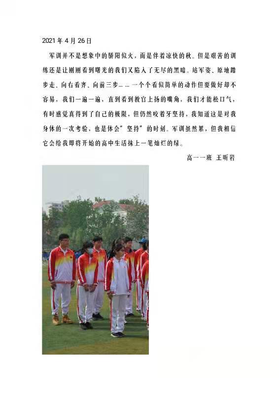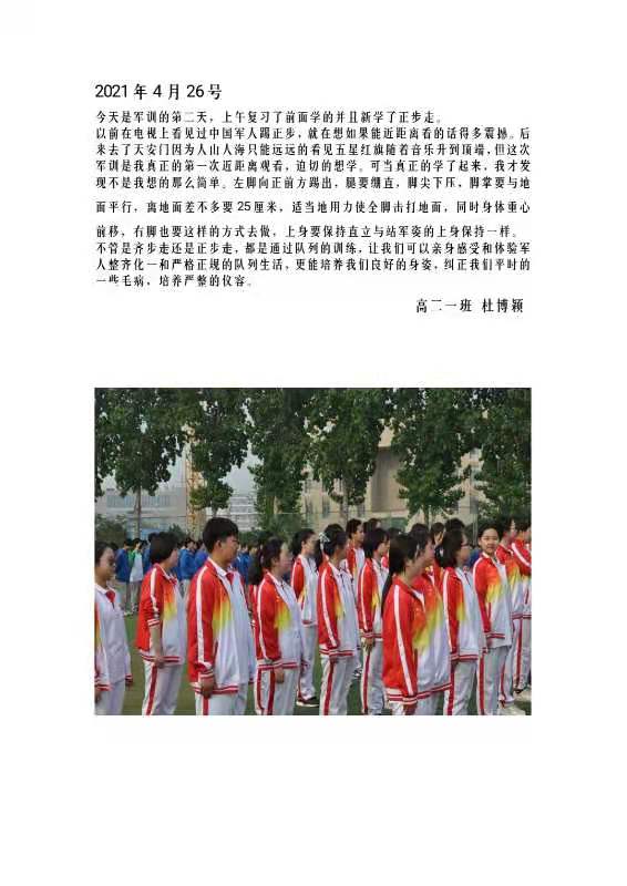 整齐划一的队形、嘹亮高昂的口号,彰显了文传贯通学子积极向上、拼搏进取的精神风貌。通过本次军训活动,学生们的身体素质、组织纪律、团队意识等方面有了明显的提高,下面是同学们的军训感言与收获!