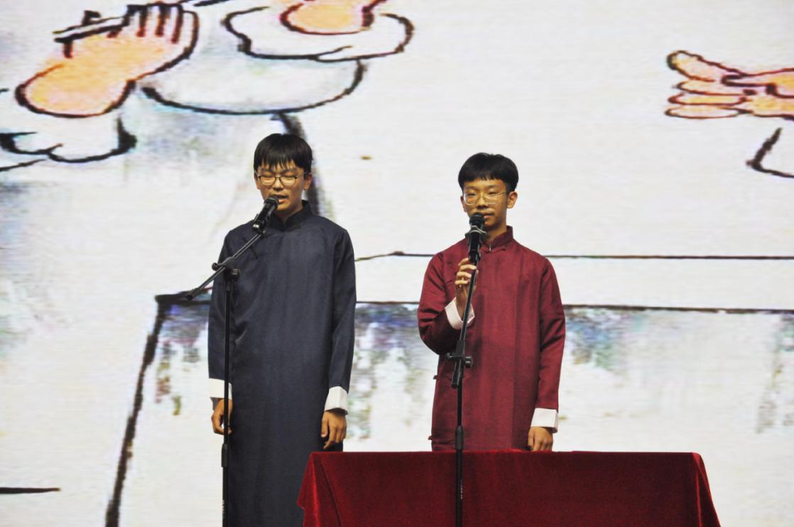 20级小教1班的史文然,郑昊辰同学众所周知是大家的开心果了。这次他们没有错过这个机会,又一次给我们带来了相声《奥运会》。
