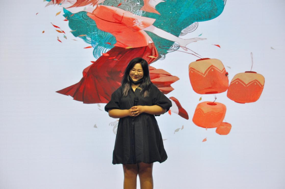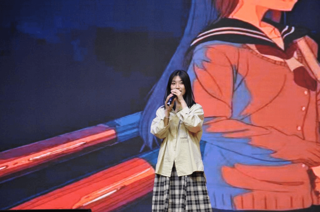 19级小教法语班的刘萱同学演唱了法语版的《大鱼》,带有欧洲氛围的法语与婉转动听的高音相结合,让人细细回味。