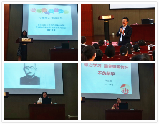 9月2日下午,国际文化与传播学部举办了2021级贯通制小学教育(德语、法语)专业新生见面会,探花直播副校长练玉春、国际文化与传播学部主任李嘉懿、原探花直播市东直门中学附属雍和宫小学书记陈玉霞、学部副主任张心远、学部副主任刘娇月、德语教研室主任刘莉、法语教研室主任欧阳慕弈及2021级贯通制小学教育专业全体师生共同参加了见面会活动。