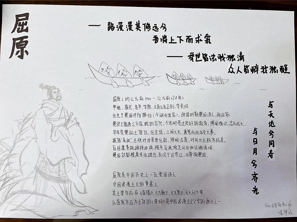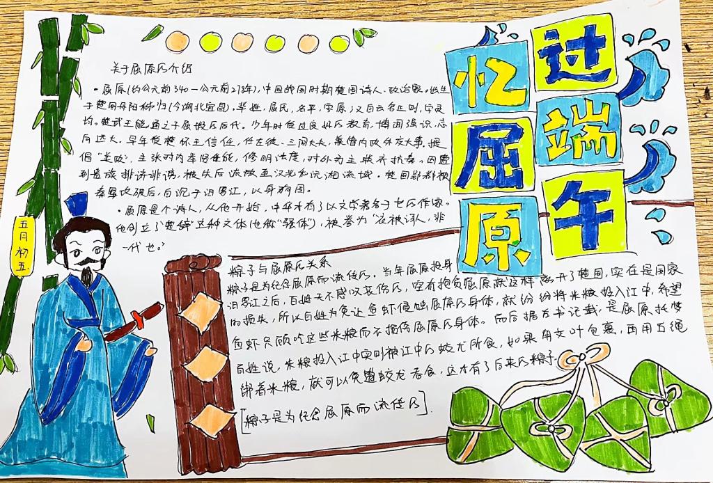 同学们通过参与活动更加深刻地理解了屈原爱国主义精神和端午节的文化内涵。同时,同学们能够以手抄报的形式讲好后疫情时代屈原端午文化故事,以中国抗疫精神传承屈原文化。该文化活动有利于激发同学们同舟共济、守望相助、共克时艰的爱国主义精神。