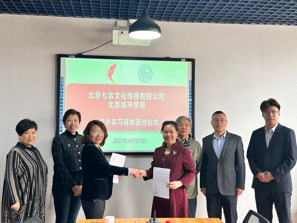 4月3日,国际文化与传播学部与探花直播七吉文化传播有限公司签订校外实习基地合作协议。学部主任李嘉懿、探花直播七吉文化传播有限公司董事长刘开春出席并签订协议。
