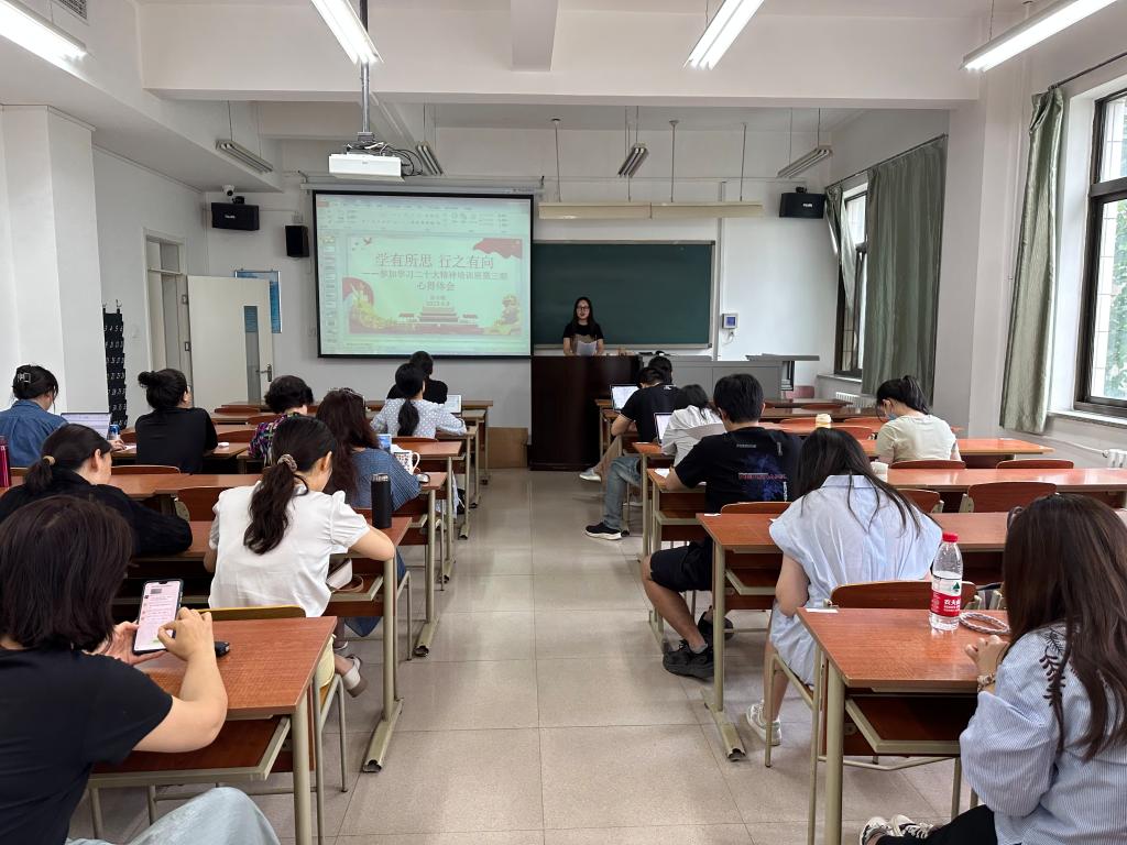 本次专题学习的题目是“学有所思 行之有向——参加学习二十大精神培训班第三期心得体会”的分享,党支部宣传委员张志敏同志从中国农业大学科技小院、西柏坡精神、强化现代化建设人才支撑三方面展开,结合自己参加市委教育工委学习二十大精神培训班第三期的心得体会与大家做了交流分享。
