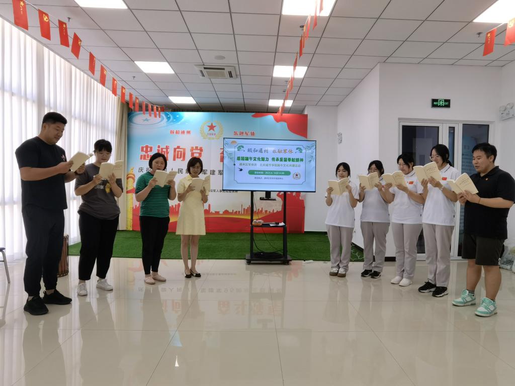 活动中,军休干部们与支部师生们举行端午联欢,在共庆传统节日的浓厚文化氛围里,了解了传统文化,也在端午节传统的爱国情怀中注入了新时代爱国主义精神。