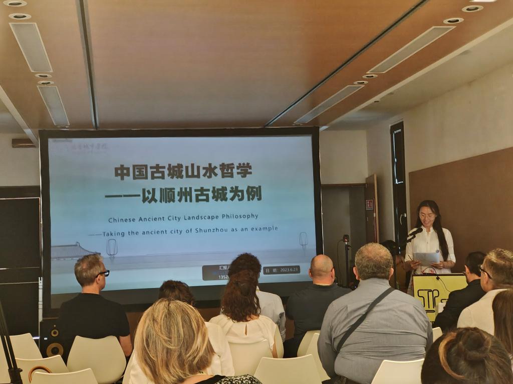 圣马力诺孔子学院中外方院长郭晓霞和凯伦•万多妮妮代表孔院致辞。我校刘蕊老师、刘晓曦老师的案例入选研讨会,两位老师与与会专家共同探讨中国古村里的保护理念以及以设计为驱动,让古城文化再现活力的优秀案例。