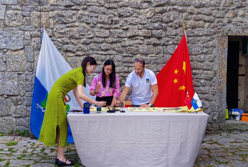 圣马力诺驻华大使达里奥•加拉西(Dario Galassi)、圣马力诺市市长托马斯•罗西尼(Tomaso Rossini)及城堡委员会官员等出席活动。各国游客对书法显示出浓厚兴趣,纷纷尝试,写下“中圣友好”字样,用中国笔墨画下圣马力诺的山川。