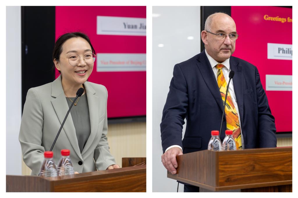 10月20日下午,我校与英国赫尔大学共同举办金融学、会计学(国际课程班)中外师生见面会。英国赫尔大学副校长Philip Gilmartin、赫尔大学全球招生主管Dominic Greenfield、商学院教授Peter Andrews,我校副校长袁佳、国际文化与传播学部主任李嘉懿等出席会议并致辞,2023级会计学、金融学(国际课程班)专业师生参加,财管教研室马诗瑶主持会议。