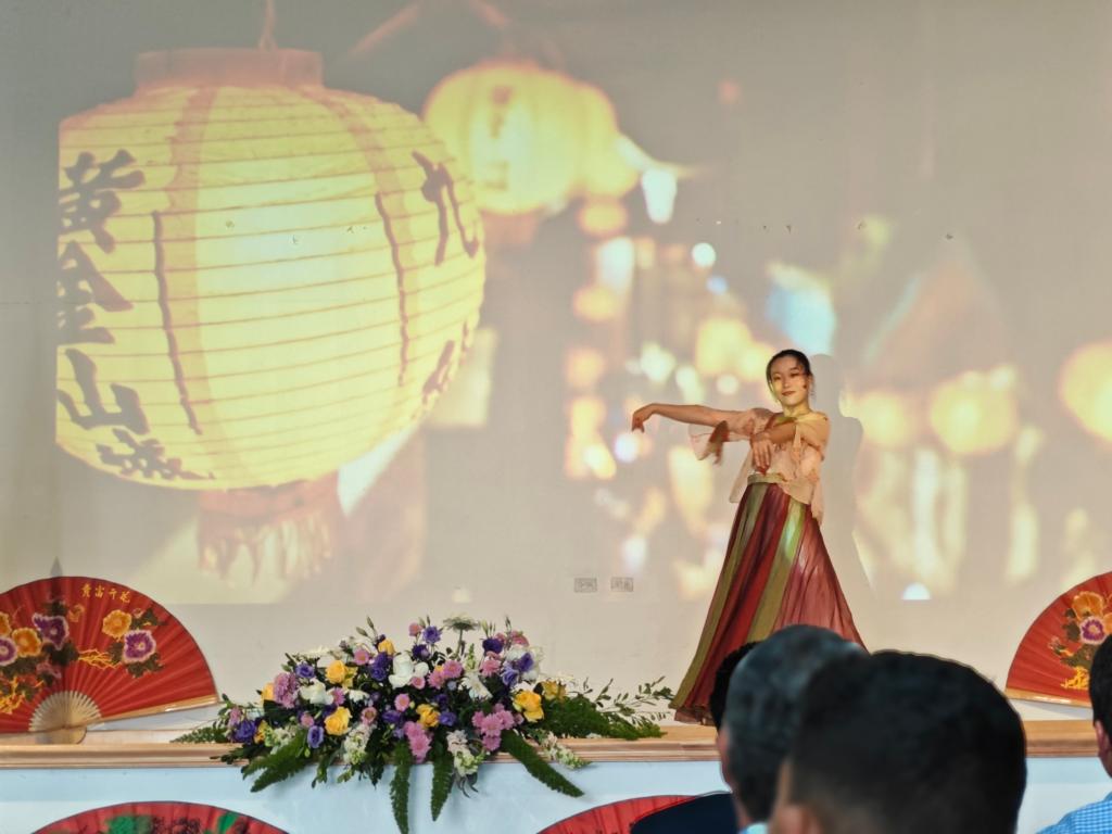 开幕式上,瓜达孔院为现场观众带来了独具特色的舞蹈表演和音乐演奏。志愿者老师黄嫣笑带来舞蹈表演《清平乐》,在悠扬的乐曲中,为在场观众展现了中国古典舞的柔美之姿;李雪鸣老师的剑舞表演,身姿矫健,英姿勃勃;俞烨慧老师以一首《月光下的凤尾竹》,带领观众感受中国民族乐器之美,让听众仿佛置身于静谧的竹林中,感受丝竹乐器带来的宁静神秘。